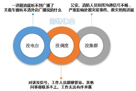 3、作为应急处置的主要力量,公安、消防部门也无法与隧道内的处置官兵取得联系,指挥、反馈通道形成盲区,指挥人员无法根据现场情况及时指挥疏导交通、组织抢险救援。