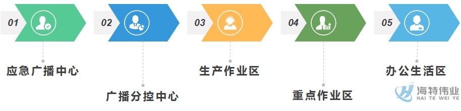 在办公区和生活区采用应急广播音柱直接放音的方式接收,可接收广播中心、分控中心呼叫喊话和日常信息广播。