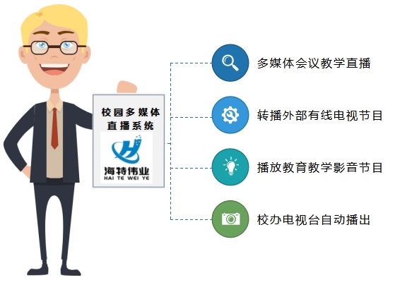 功能强大,不仅具备传统多媒体直播功能,还加入电视台自动播出系统,使得电视节目播放实现无人值守播出,大大方便了学校对节目的播出管理和控制。