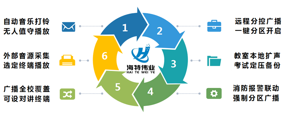 澳门新葡电子游戏网中学校园IP网络广播系统是融合“日常广播、教学广播、管理广播、分控广播、教室扩声、操场扩声、双向对讲”等诸多功能于一体的综合性校园广播系统。该系统集成了“定时自动打铃、教室多媒体扩声、老师蓝牙讲课、多级分控管理、音频实时采播、双向交互对讲”等国际先进多媒体技术在教育教学中的最新应用。海特伟业中学校园IP网络广播系统在坚持“技术先进、成熟可靠、性能优越、考场兼备、灵活配置”的基础上,兼顾中长期的扩容扩展,在平台结构、广播应用、综合管理、系统性能等各个方面适应了校园广播系统的多种使用需要,是适应时代发展趋势的,极具前瞻性、应用性、科学性的新一代中学校园IP网络广播系统。