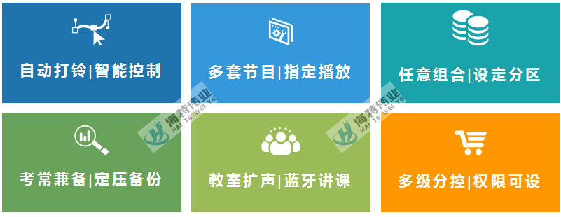 ■ 海特伟业教室音箱具备考常兼备功能,平时用于打铃和教学广播,考试时可用于高考英语听力考试,具备定压广播备份功能。