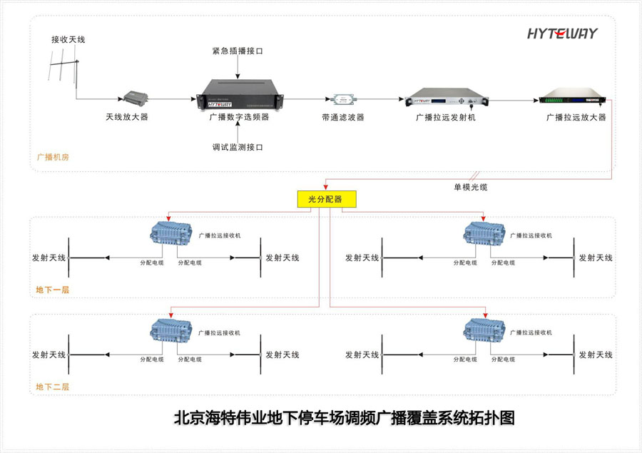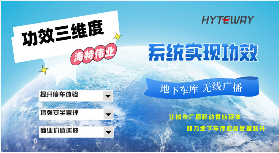 通过设置在停车场内HYTEWAY品牌“调频广播终端”和宽频发射天线,实现停车场FM调频广播的无盲区覆盖覆盖。