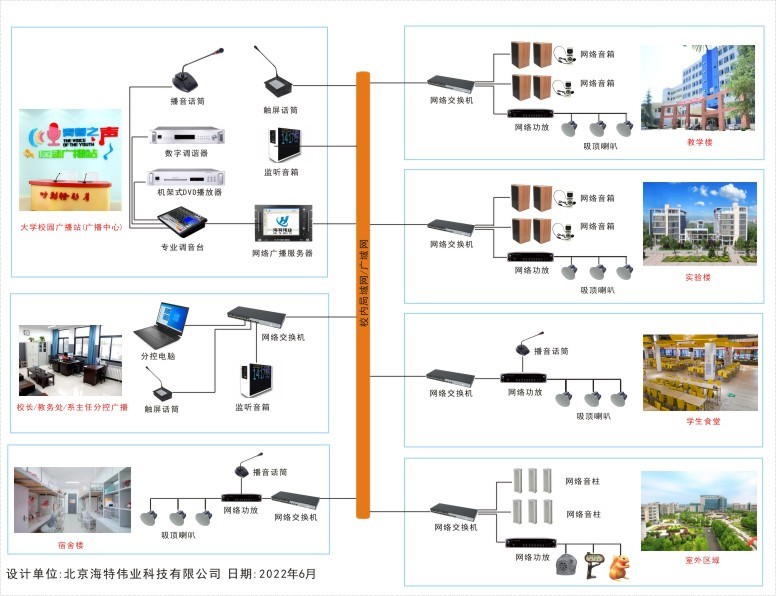 随着教育信息化建设的深入推进,传统的模拟广播系统已无法满足现代化校园对智能化、场景化、融合化的管理需求。为此,海特伟业提出构建一套基于IP技术的广播系统解决方案,旨在打造一个集数字化、网络化、智能化于一体的大学校园IP智慧广播平台,以全面满足日常广播、教学广播、互动广播、紧急疏散、信息发布、消防联动等多部门多维度融合性广播性能需求,达到显著提升校园管理效率、丰富校园文化生活、保障校园安全的总体广播建设要求。