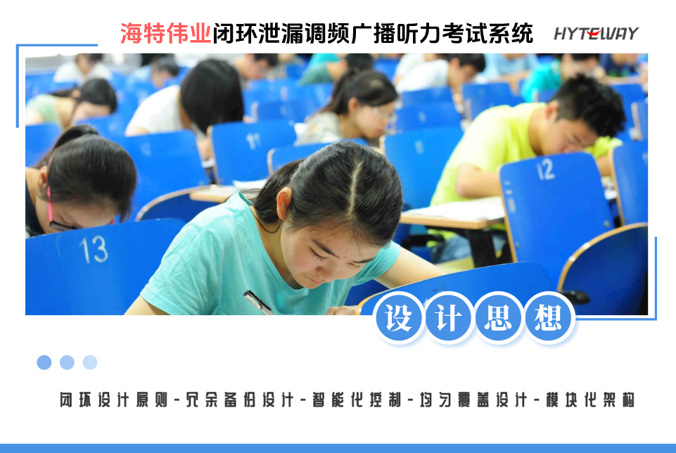 海特伟业闭环泄漏电缆调频广播听力考试系统集成了自动播放控制、智能电源管理、主备冗余切换等先进功能,能够满足各类语言听力考试对音质、同步性和可靠性的多种要求。与需要申请频率的开放式调频广播不同,本系统工作在封闭的泄漏电缆环境中,无需申请无线电频率,具有信号稳定、覆盖均匀、保密性强、管理智能等特点,完全避免了信号覆盖不均、存在信号盲区、受干扰音质不好等影响考试公平性的问题。