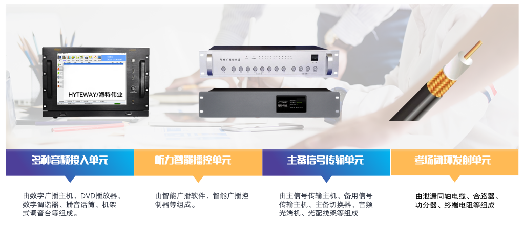 闭环泄漏电缆调频广播听力考试系统由以下主要设备组成:
