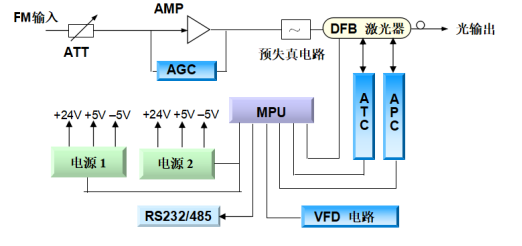 ■本机采用进口优质高线性、分布反馈、热电致冷、光隔离DFB内调处理器。